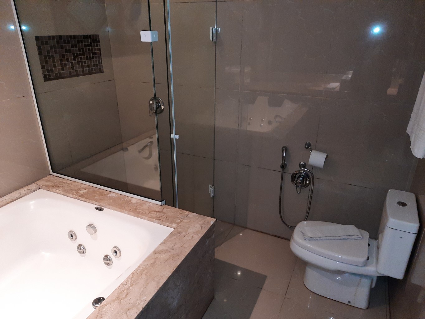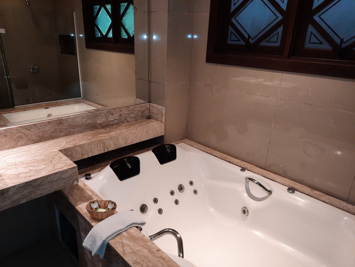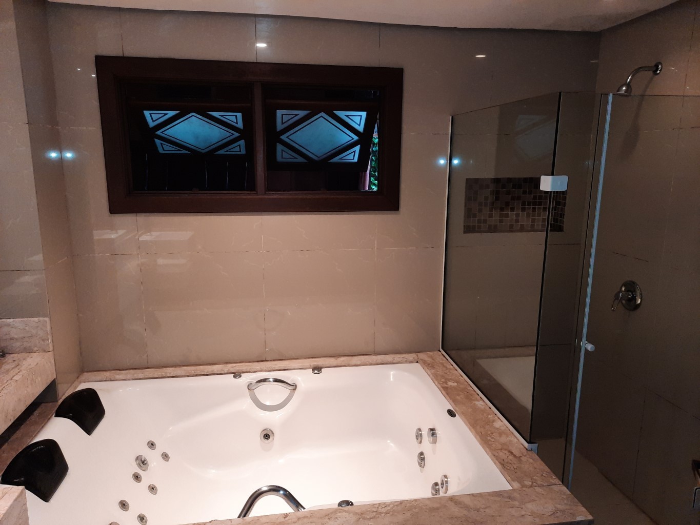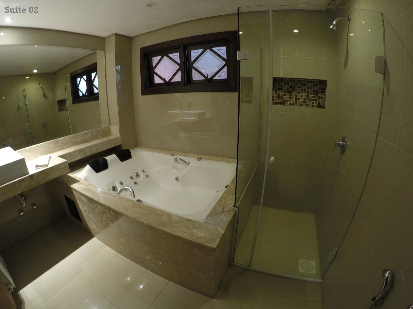Desfrute do conforto e da exclusividade dessa suíte com banheira de hidromassagem para casal.